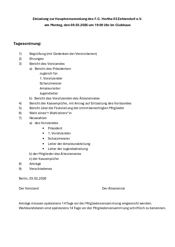 am Montag, den 09. März 2026 um 19:00 Uhr im Clubhaus
